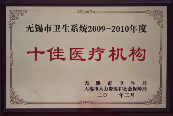 江原医院被评为2009-2010年度无锡市卫生系统十佳医疗机构